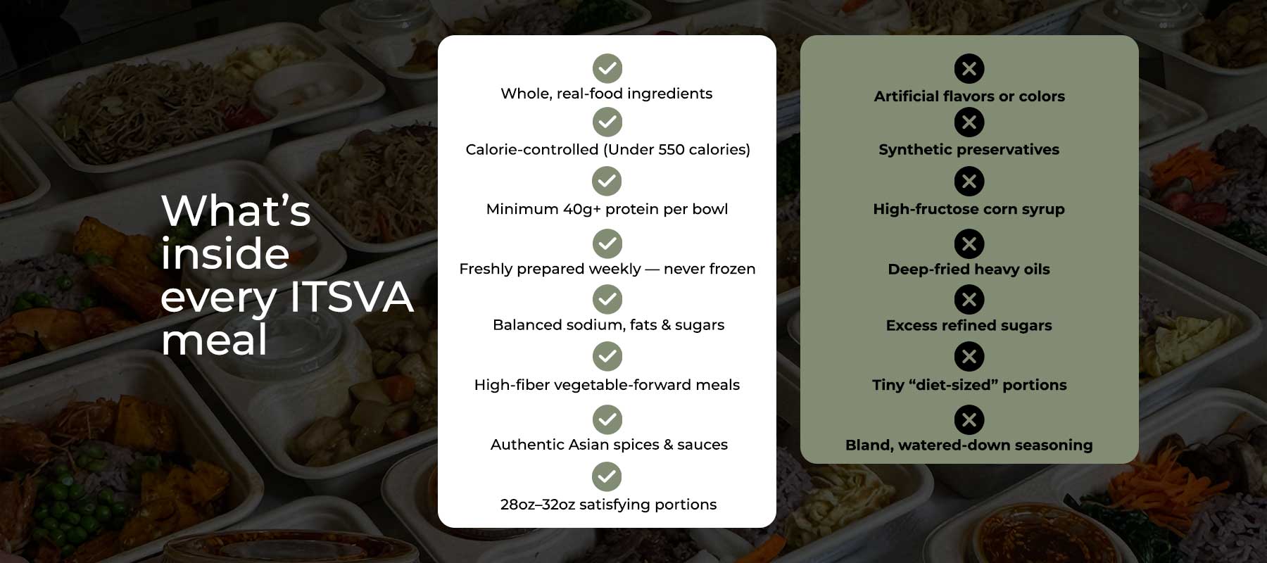 I love Asian food but finding clean, high-protein options was impossible… until ITSVA. These bowls are fresh, satisfying, and packed with protein. I lost 7 lbs in 3 weeks — no stress, no cooking, no meal fatigue.